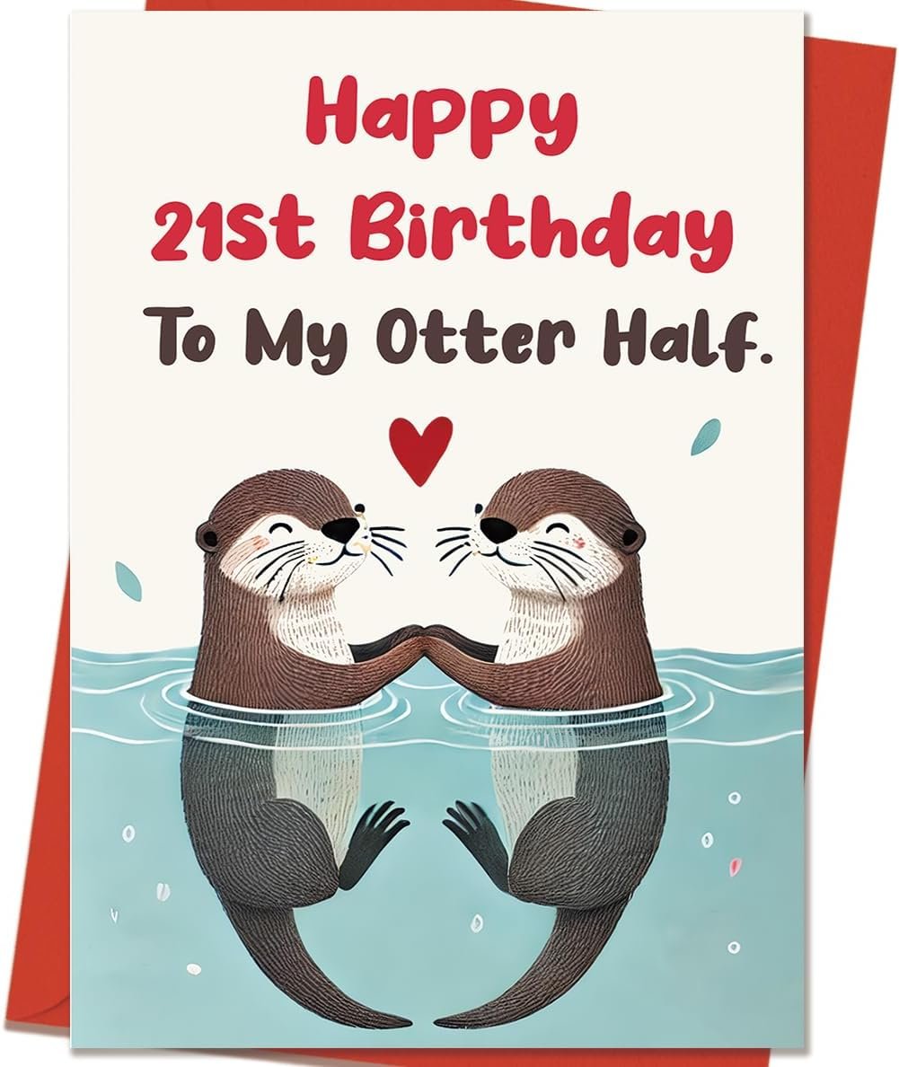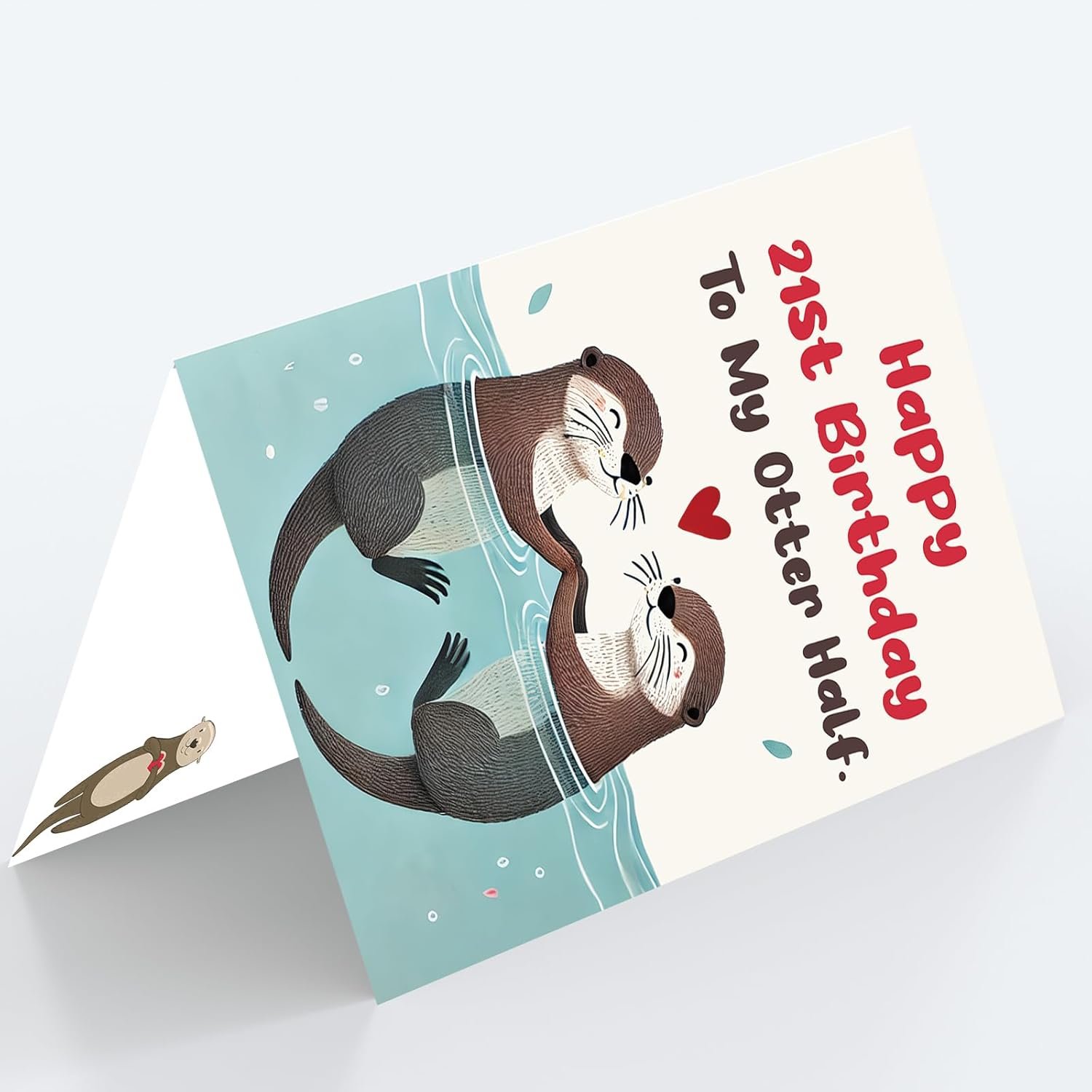 21st Birthday Card Gifts for Him Her | Cut Otter 21 Year Old Birthday Decorations for Boyfriend Girlfriend